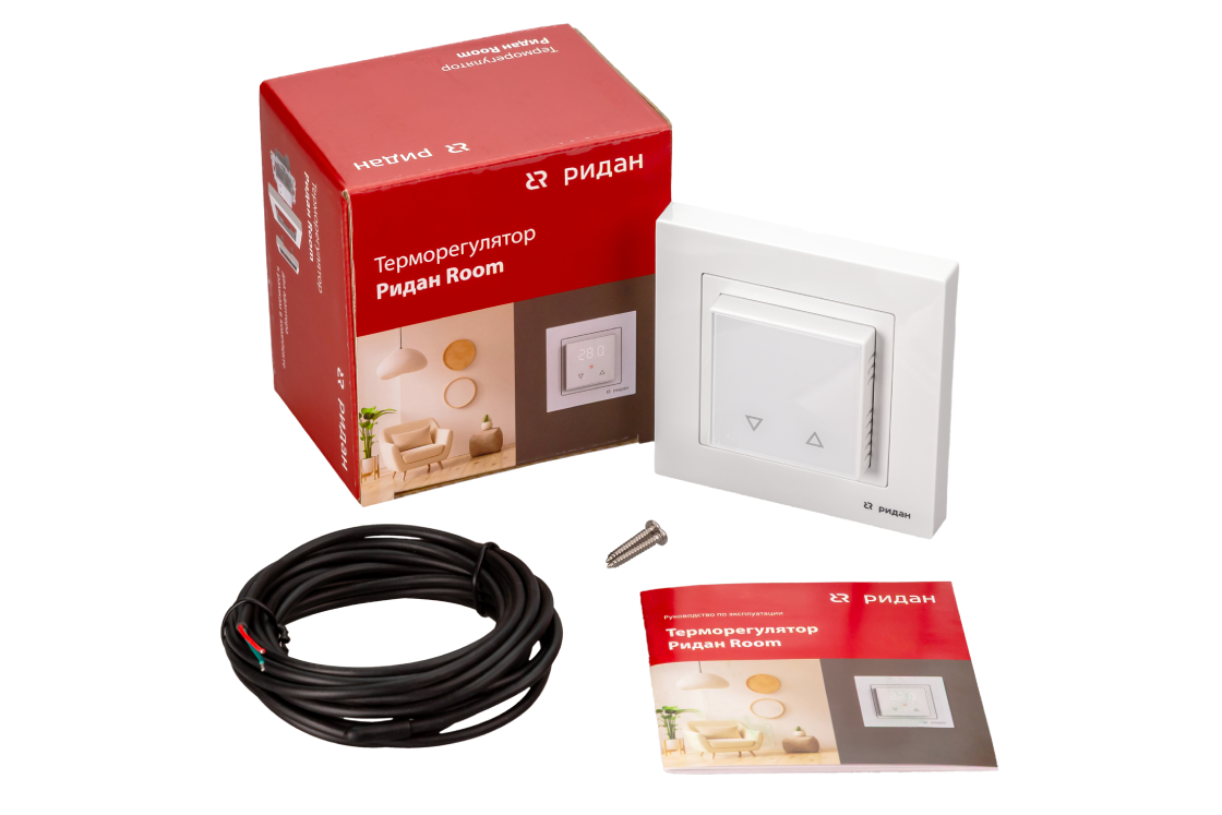 Ридан Room — электронный терморегулятор со встроенным датчиком температуры воздуха и датчиком температуры пола на проводе, предназначенный для управления электрическими системами комфортного подогрева пола или системами полного отопления помещений.